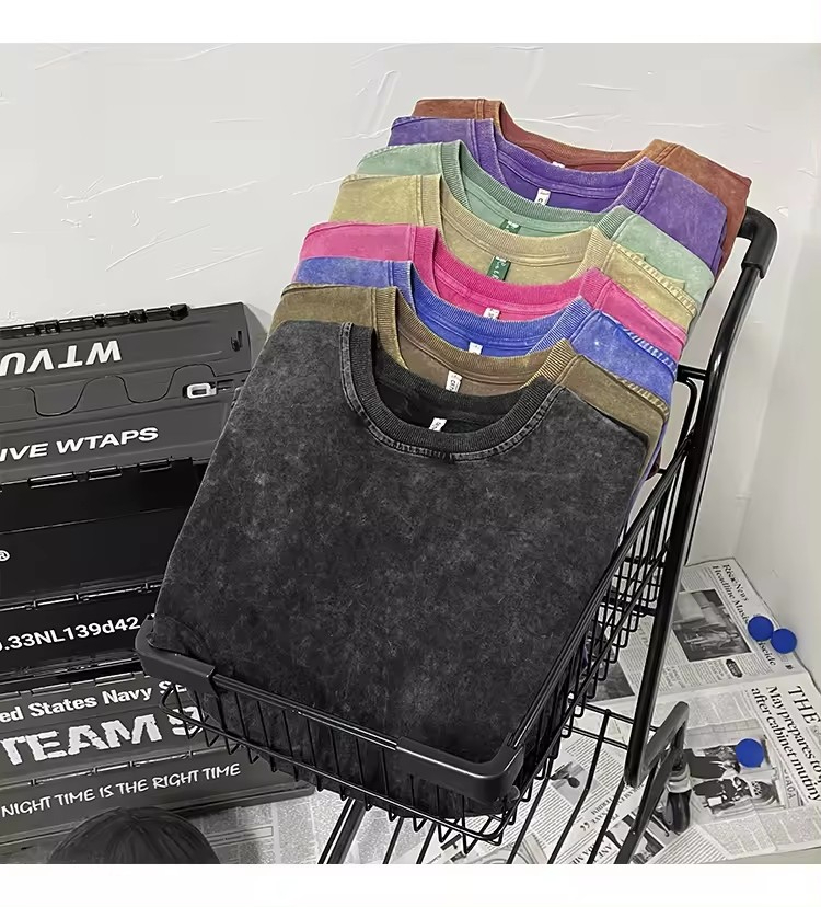 This acid wash t-shirt fabric is crafted from 100% premium cotton, treated with an acid wash process to create a distinctive, vintage inspired look. Each piece has its own distinctive distressed appearance as a result of the technique’s unique pattern of faded and lightened areas. Soft, breathable, and comfortable, the cotton fabric retains its natural texture while offering a relaxed, worn in feel. Perfect for casual, streetwear, or grunge inspired styles, this fabric adds an edgy and timeless aesthetic to any wardrobe.