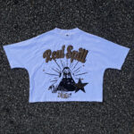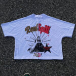 The cotton fabric used to make this cropped, boxy t-shirt is soft and breathable, making it light and comfortable to wear. It has a relaxed, oversized silhouette and a cropped length, giving it a modern, laid back look that’s great for wearing casually. The durable cotton provides natural stretch and softness, making it an ideal choice for everyday wear with a trendy edge.